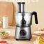 Electric food chopper designed to finely chop vegetables, nuts, and herbs. Compact and easy to clean.